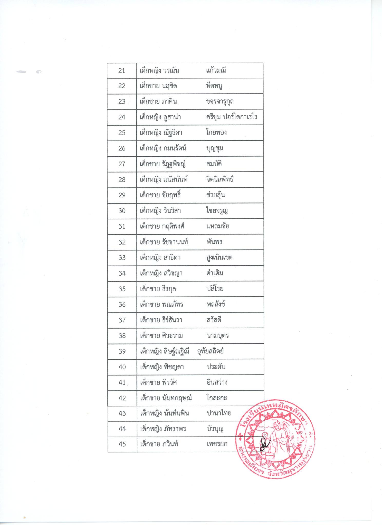 นักเรียนที่มีรายชื่อตามประกาศนี้ ให้มาสอบคัดเลือก