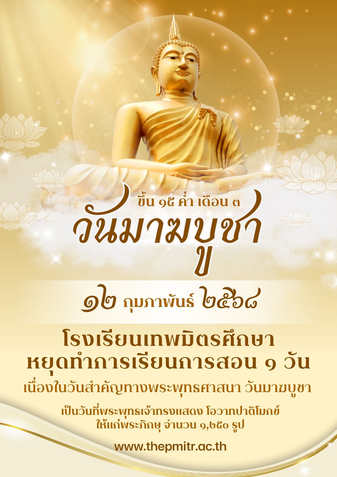 » ประกาศ วันที่ 12 กุมภาพันธ์ 2568 หยุดเรียน 1 วัน เนื่องในวันมาฆบูชา