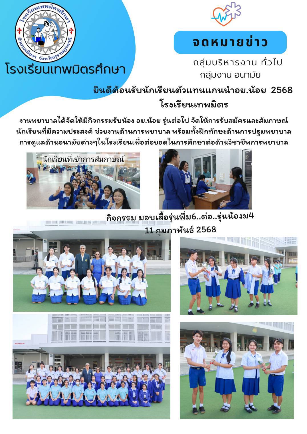 » โรงเรียนเทพมิตรศึกษา ยินดีต้อนรับนักเรียนตัวแทนแกนนำ อย.น้อย วันที่ 11 กุมภาพันธ์ 2568