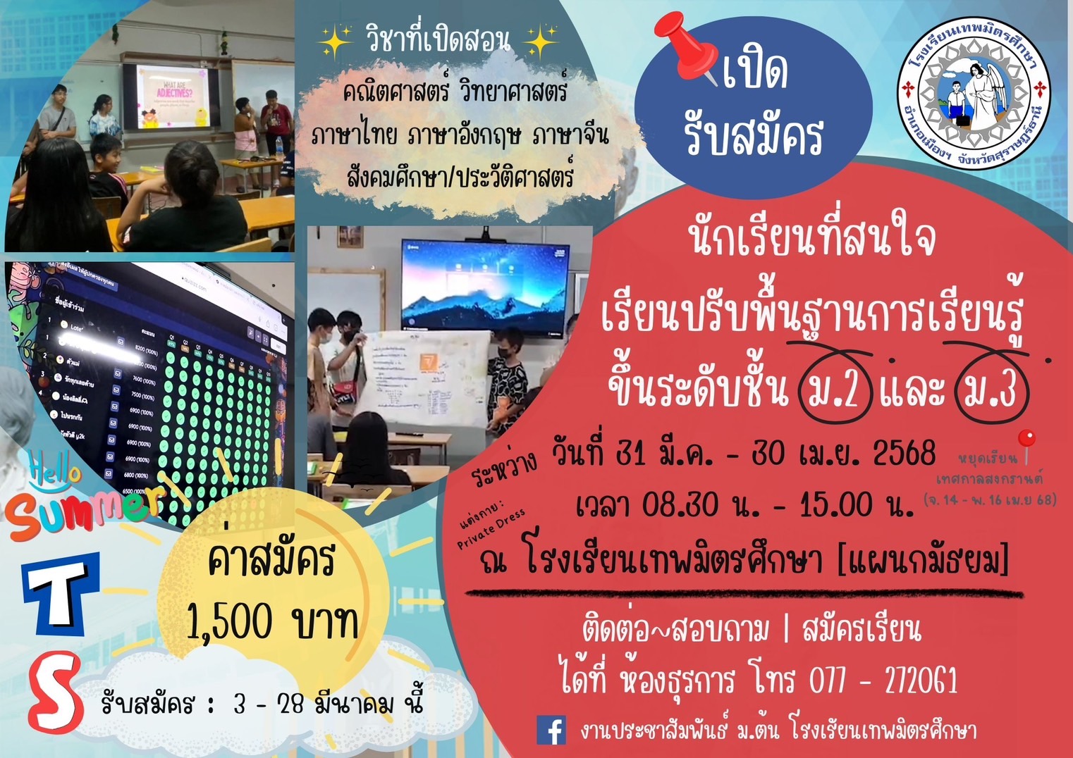 » เปิดรับสมัครนักเรียนที่สนใจเรียนปรับพื้นฐานการเรียนรู้ ขึ้นระดับชั้น ม.2 และ ม.3 วันที่ 31 มี.ค. 2568 - 30 เม.ย. 2568
