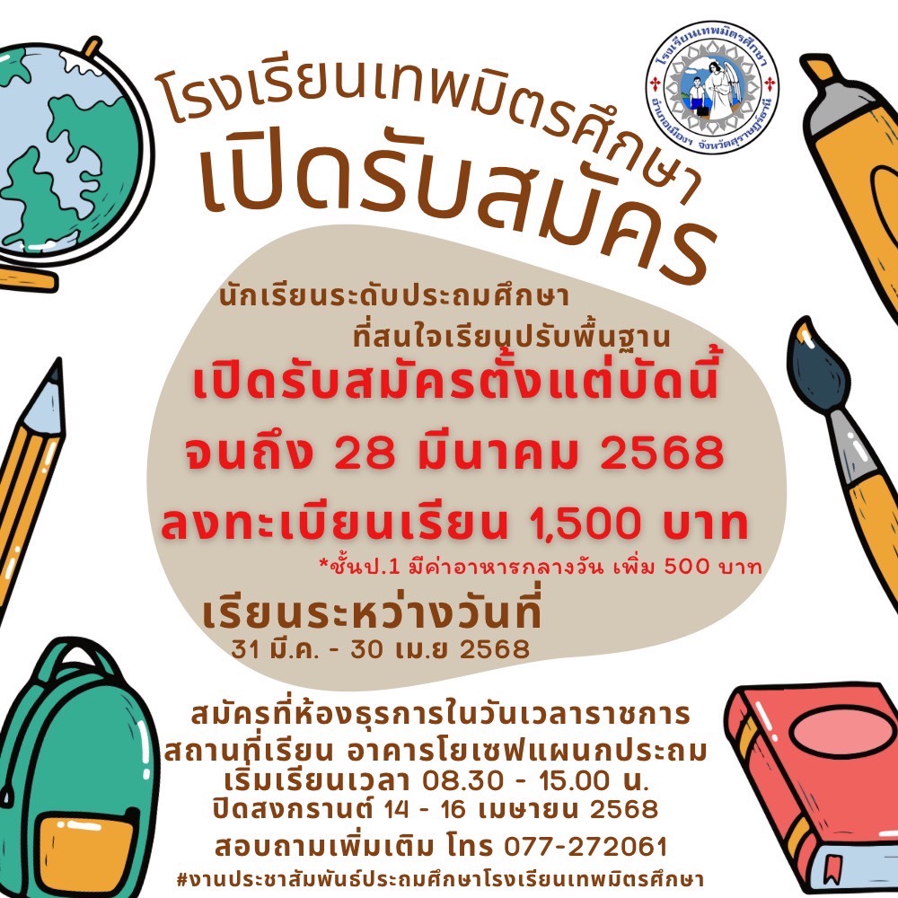 » เปิดรับสมัคร นักเรียนระดับประถมศึกษาที่สนใจเรียนปรับพื้นฐาน จนถึง 28 มี.ค. 2568 ระหว่างวันที่่ 31 มี.ค. - 30 เม.ย. 2568