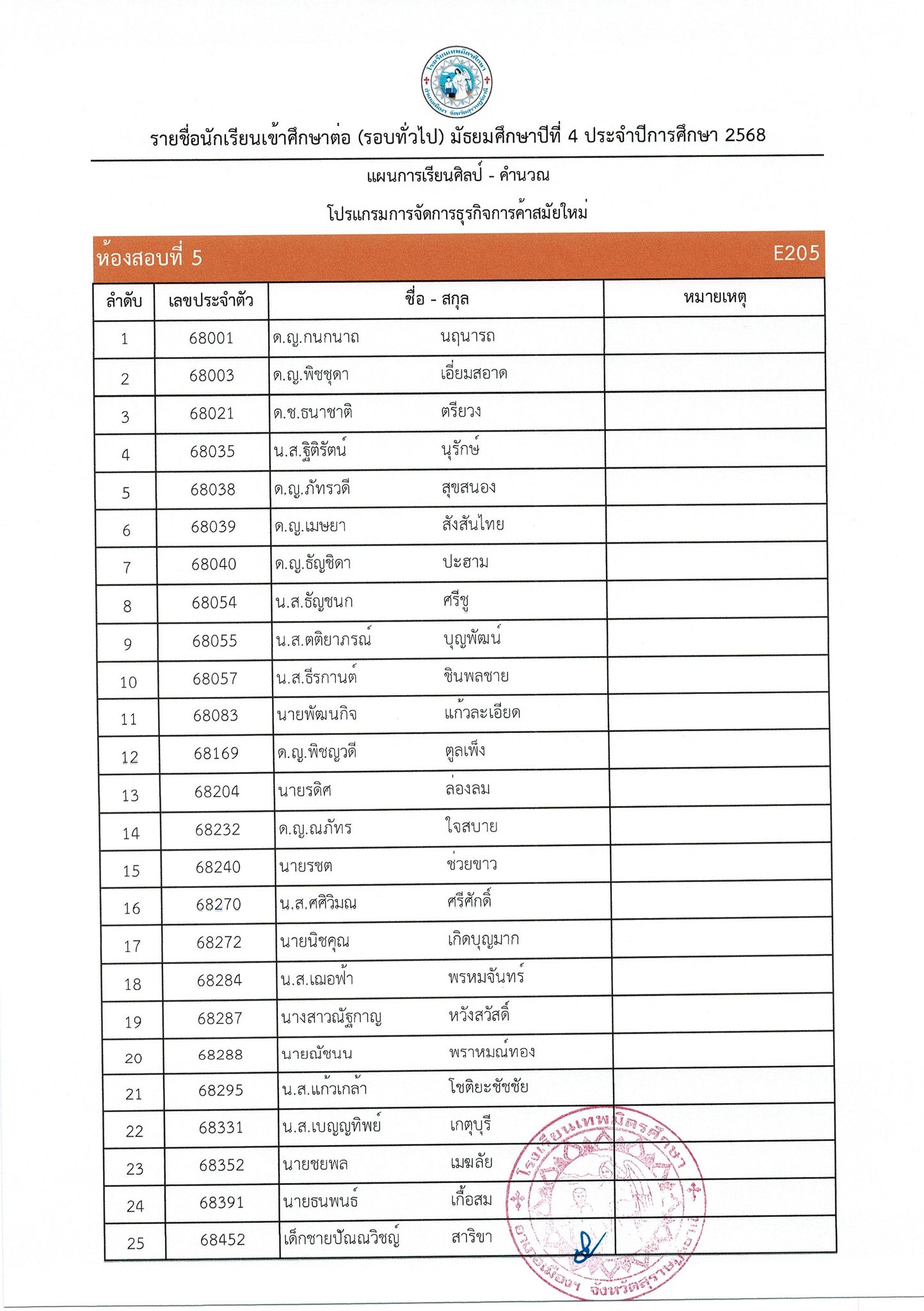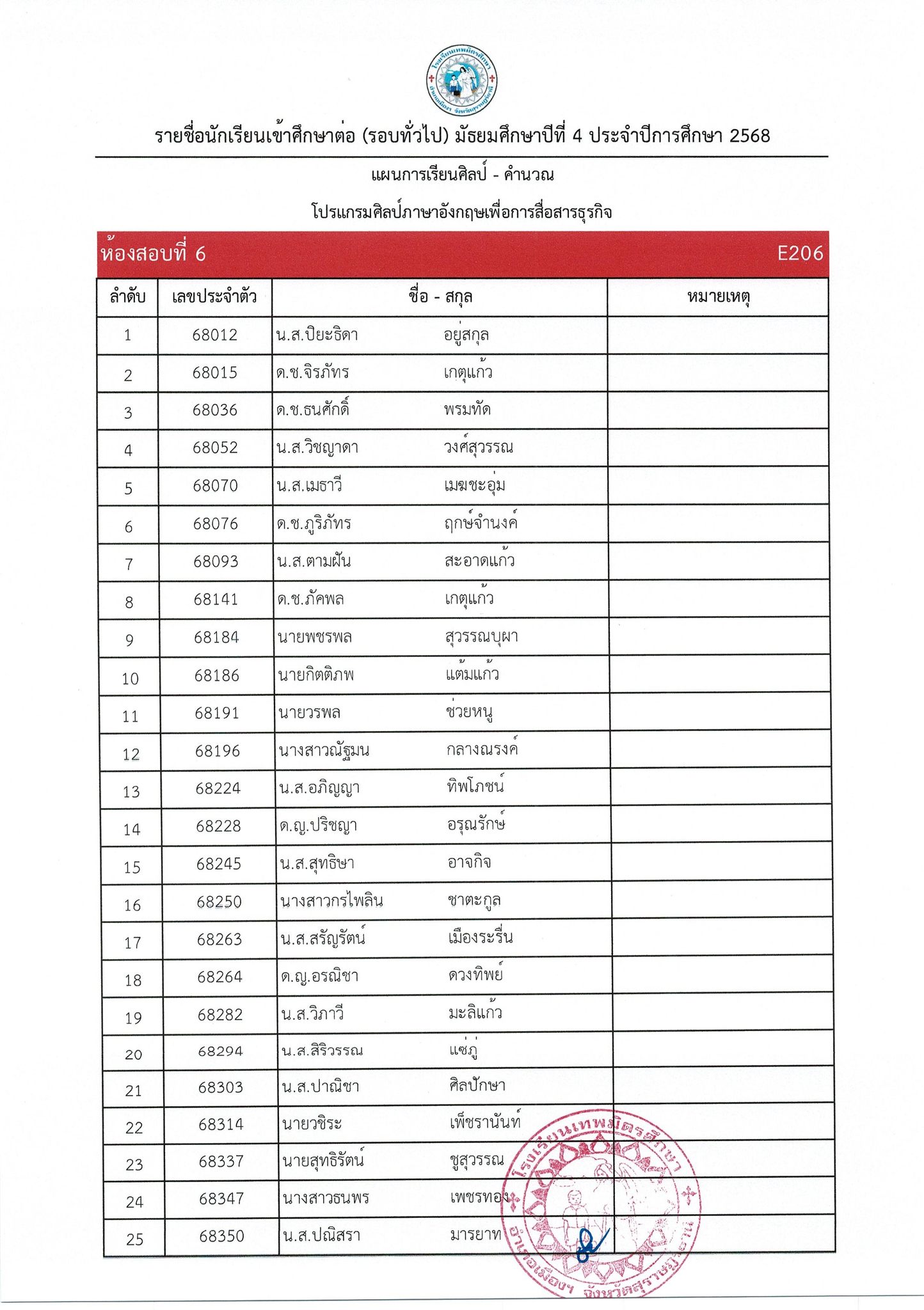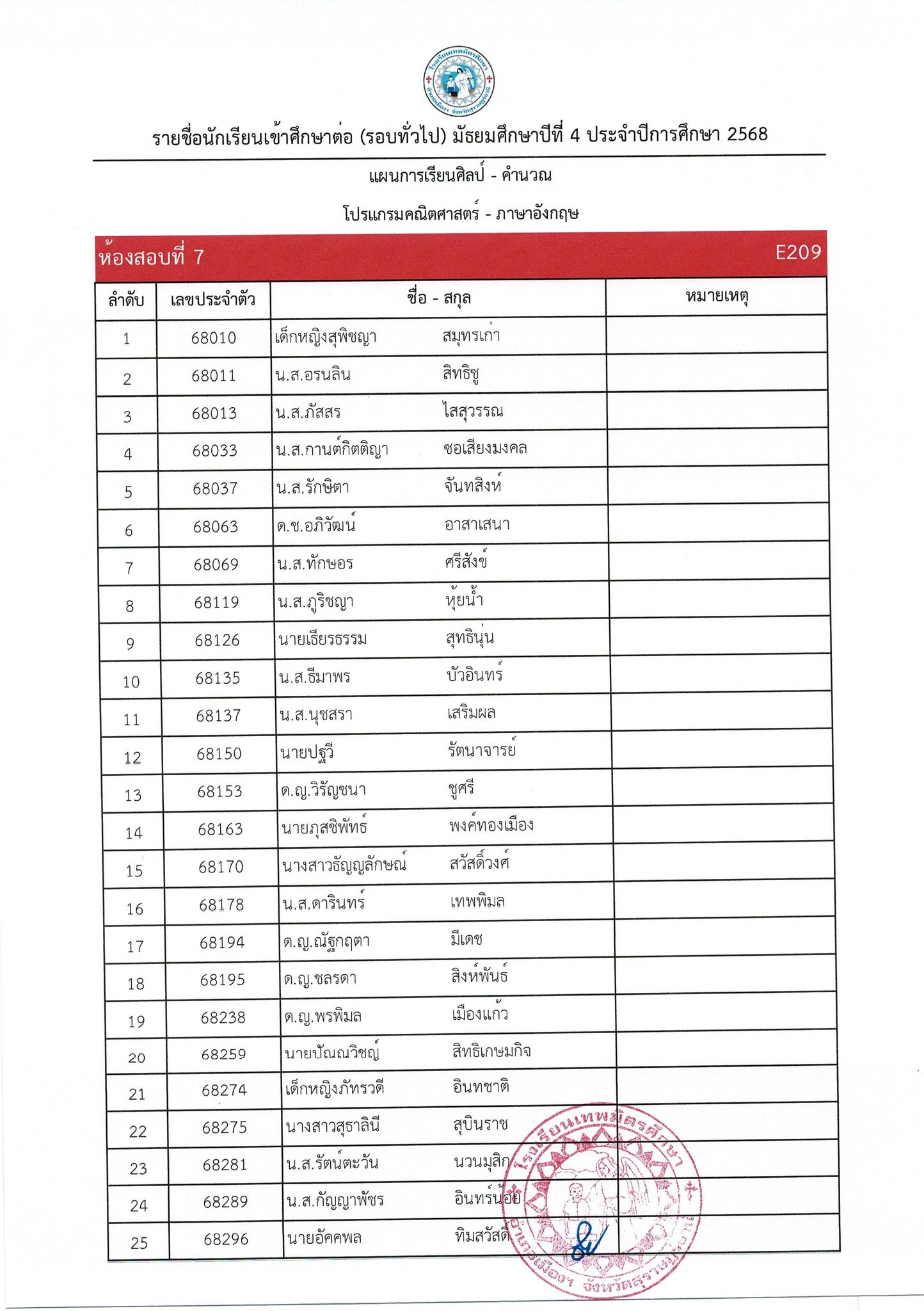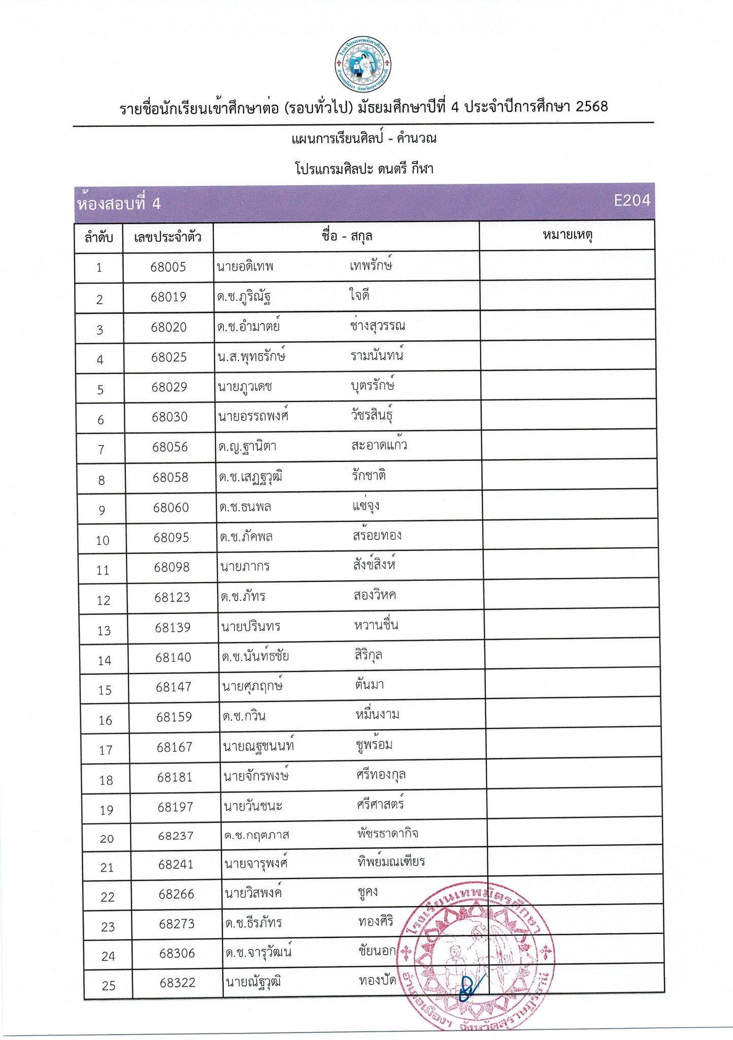 » ข่าวประชาสัมพันธ์ » ประกาศรายชื่อผู้มีสิทธิ์สอบเข้าศึกษาต่อระดับชั้นมัธยมศึกษาปีที่ 4 (รอบทั่วไป) ประจำปีการศึกษา 2568 สอบวันอาทิตย์ที่ 30 มีนาคม 2568 ณ อาคารดอนบอสโก โรงเรียนเทพมิตรศึกษา