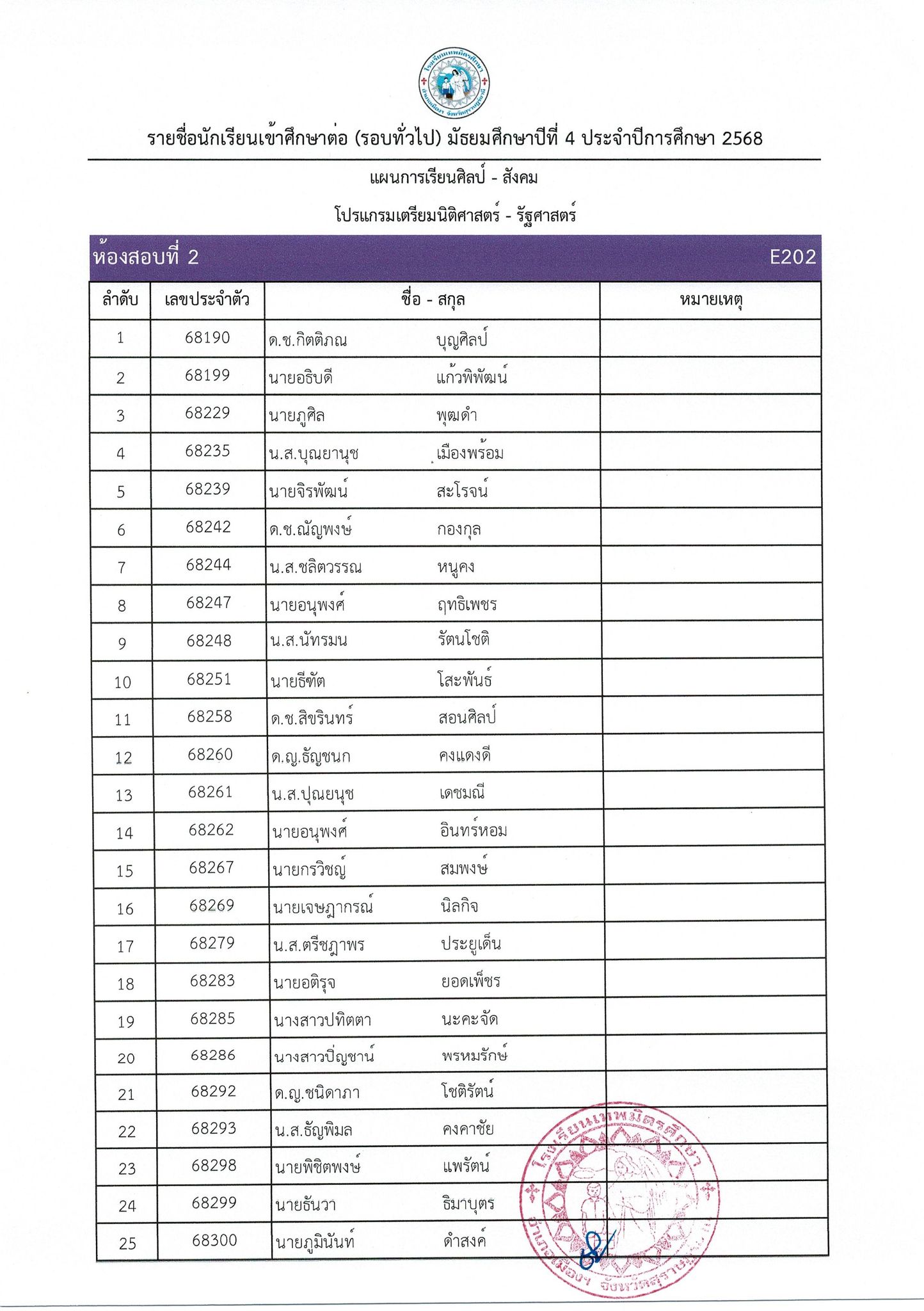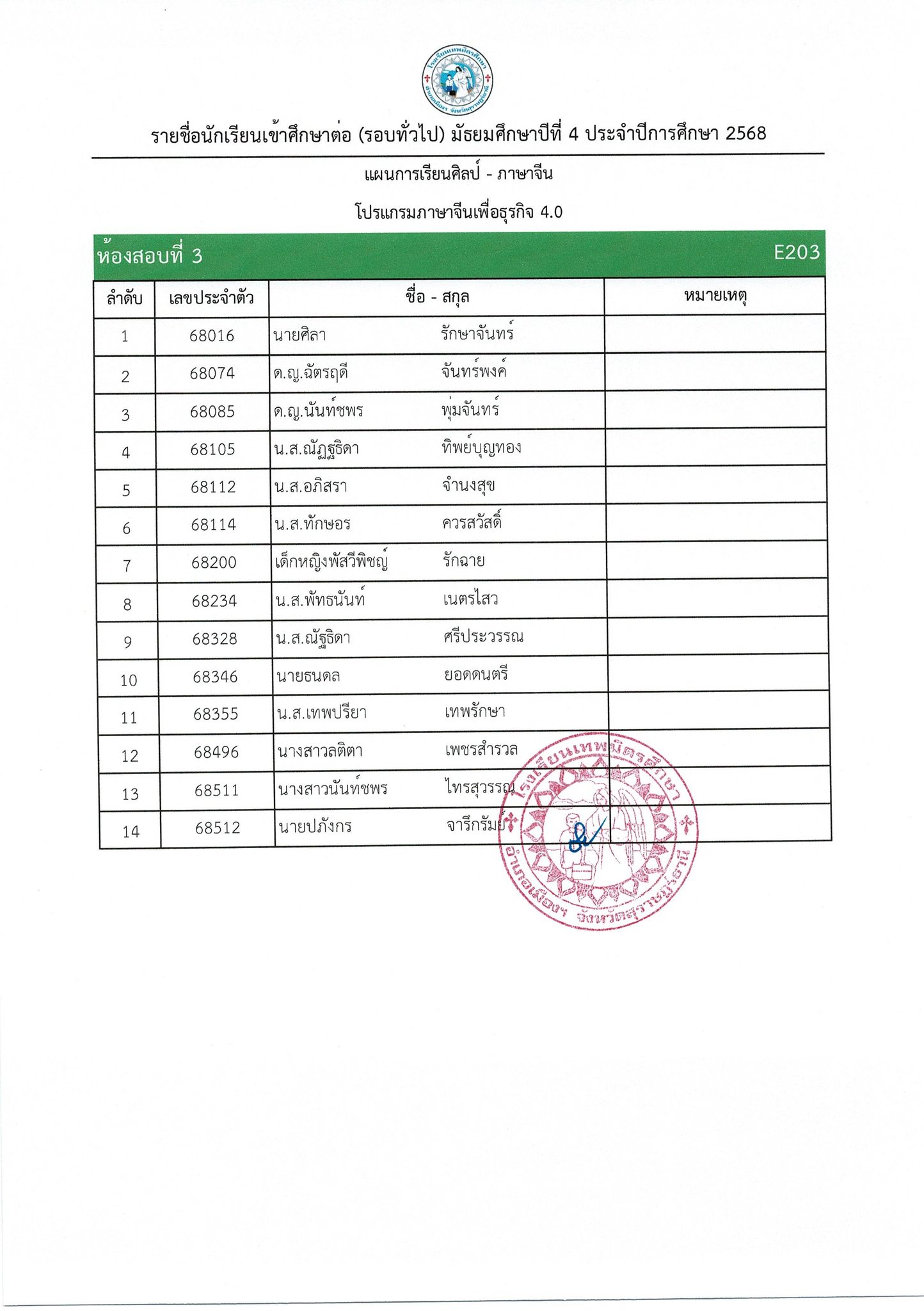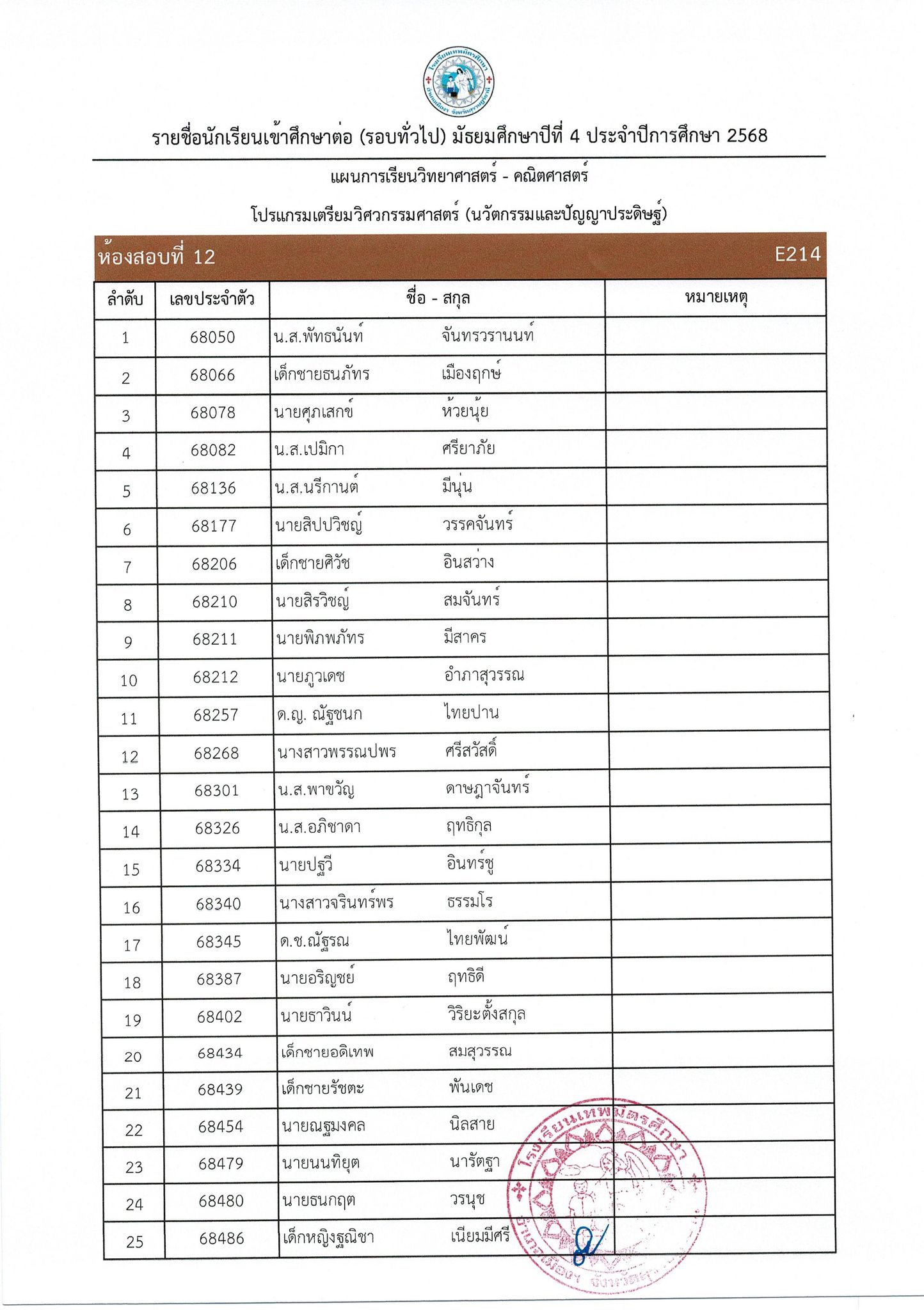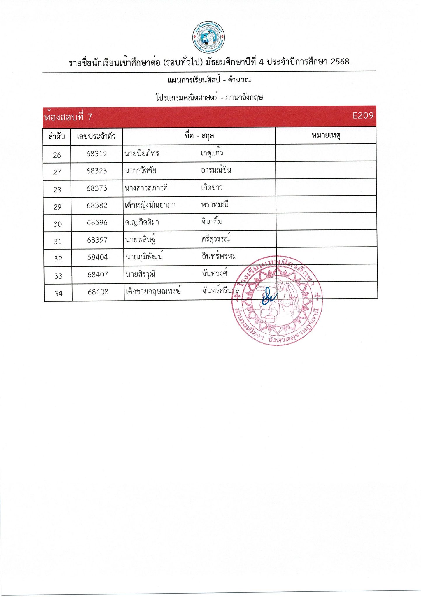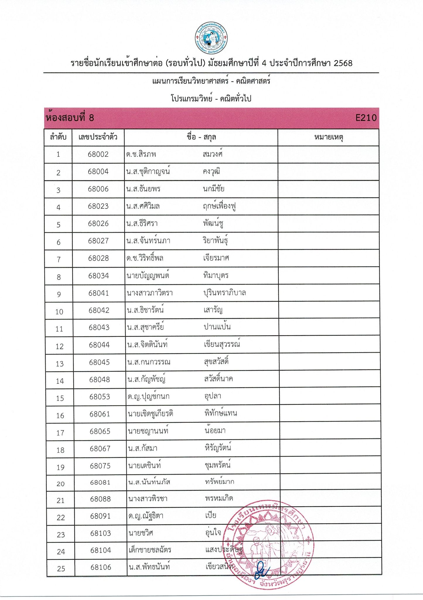 » ข่าวประชาสัมพันธ์ » ประกาศรายชื่อผู้มีสิทธิ์สอบเข้าศึกษาต่อระดับชั้นมัธยมศึกษาปีที่ 4 (รอบทั่วไป) ประจำปีการศึกษา 2568 สอบวันอาทิตย์ที่ 30 มีนาคม 2568 ณ อาคารดอนบอสโก โรงเรียนเทพมิตรศึกษา