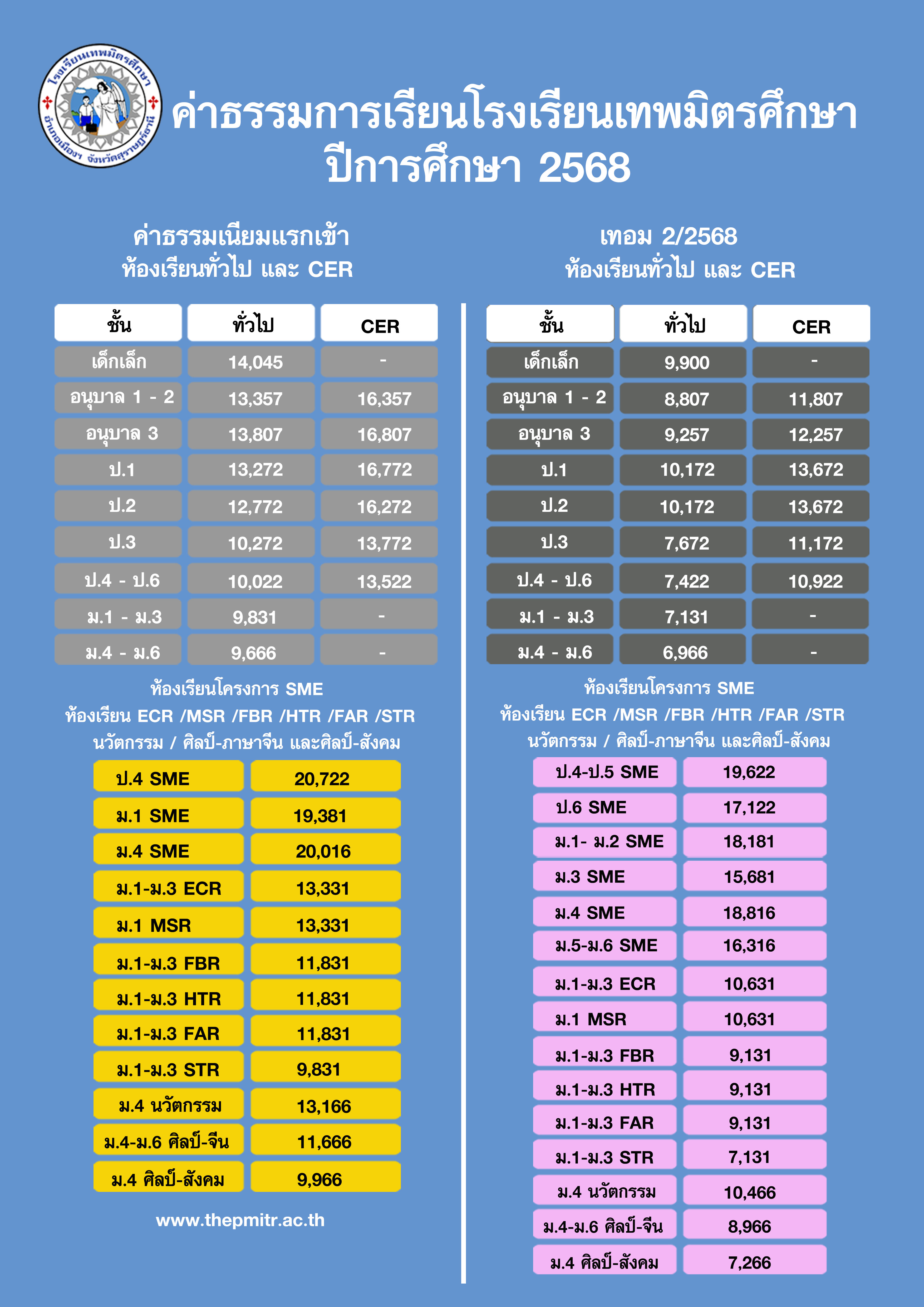 » ค่าธรรมเนียมการเรียนโรงเรียนเทพมิตรศึกษา ปีการศึกษา 2568