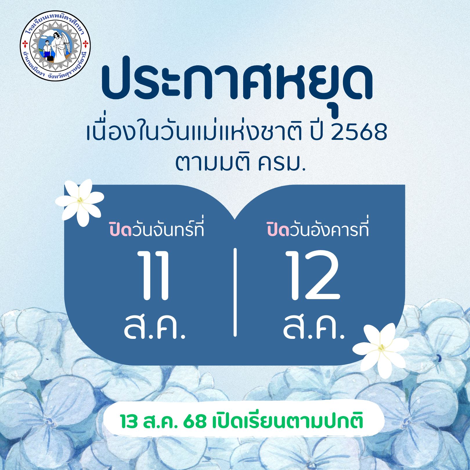 ประกาศโรงเรียนเทพมิตรศึกษา หยุดการเรียนการสอนในวันที่ 22 กันยายน 2568 เพื่อสืบสานประเพณีของท้องถิ่น บุญประเพณีสารทเดือนสิบ